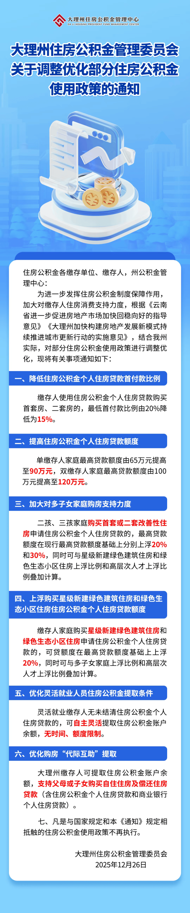 大理州住房公积金管理委员会关于调整优化部分住房公积金使用政策的通知