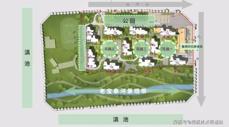项目景观以“春景图卷”作为画面进行演绎,在新城漫步中回望春城画卷,通过最新的先进生活样本,打造礼序归家的多重场景。内部景观以“重软景、重场景、显尊贵、显风格”为设计策略,植入十八个场景模块功能。在大空间内区分主题场景,小空间内做到有声有色,形成移步异景的多重画卷。您进来看到的北侧为仪式主入口“春屿归庭”,礼序大门、高阔门厅、迎宾会客三进入园,酒店式落客区彰显先进友好社区理念;首个园子约3000平的一进大中庭里,可以停放两架直升机的超宽间距,让我们将足够大的空间形成了”一庭四致”的四个小院落,即四幕景观空间,让您感受归家场景的多重画面变奏。在社区内营造“春城的花园底色、滇派的浪漫风情、民俗的文化印记、酒店的精致细腻”的场景感受。我们以“春”作为载体,把昆明最具特色的春景以及人们最爱的春天符号,带入园区;