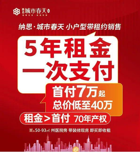 纳思·城市春天在售户型面积约50-93㎡,带租约销售。70年产权带装修交付。