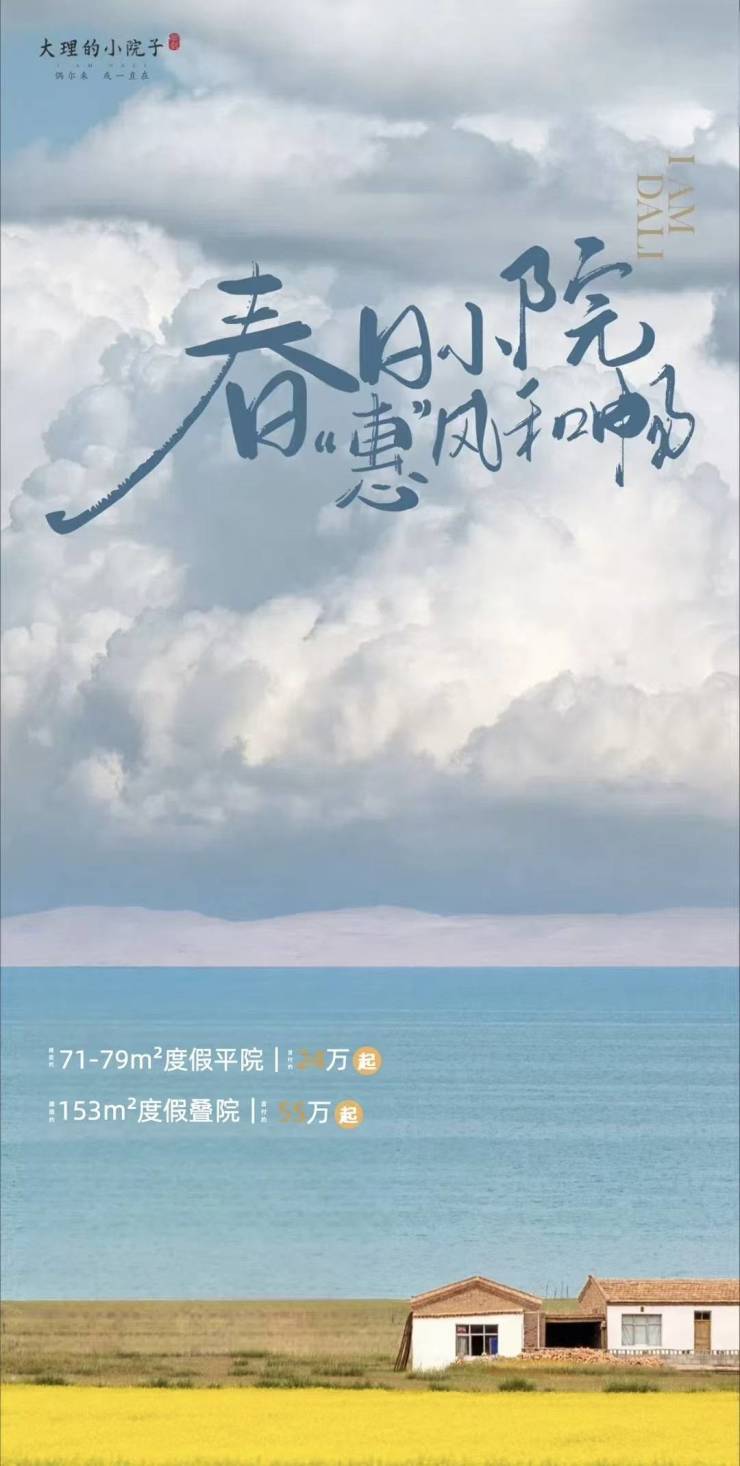 实力融创·大理的小院子中区,建面约71-79㎡度假平院首付约24万起,建面约153㎡度假叠院首付约55万起!更多房源信息可咨询营销中心销售,联系电话4001560036