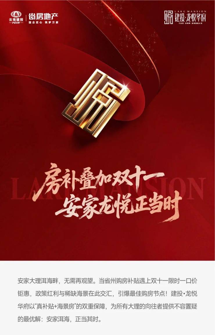建投·龙悦华府|房补 + 双十一双重福利!洱海边现房限时抢藏正当时