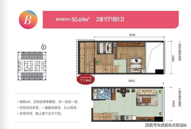 多功能4.5米loft公寓轻松两层无压力,主力面积约:28-58㎡