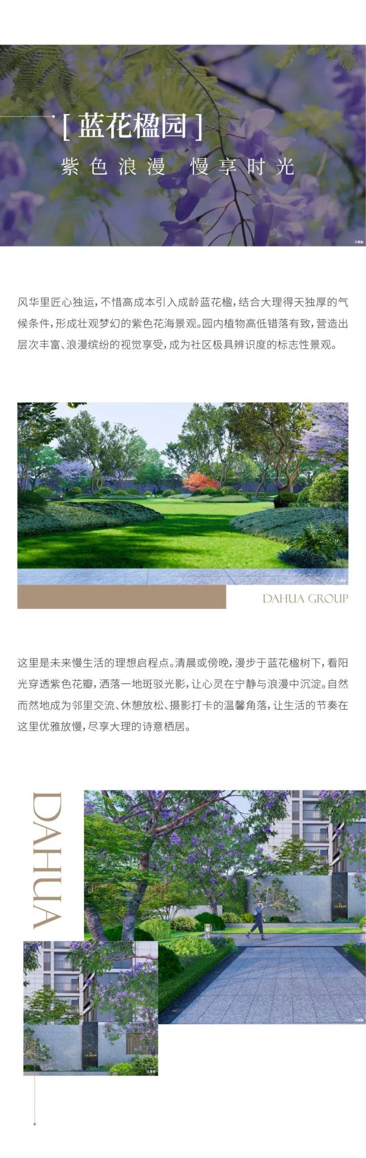 在大华大理精心打造的约31000㎡绿氧园林社区内,巧妙布局着四大主题花园组团:蓝花楹园、樱花园、银杏园与科普花园。将自然之美与社区活力完美融合,为您呈现一场永不落幕的视觉盛宴与心灵休憩。