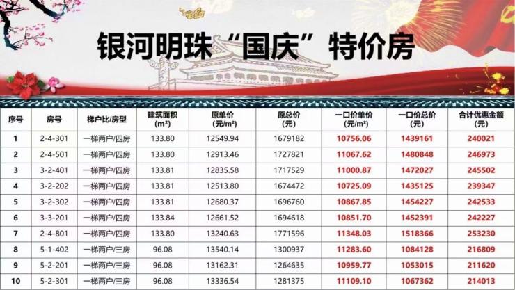 据搜狐焦点大理站获悉,大理银河明珠,国庆特价房限时发售,一口价单价10725.09元/㎡起!