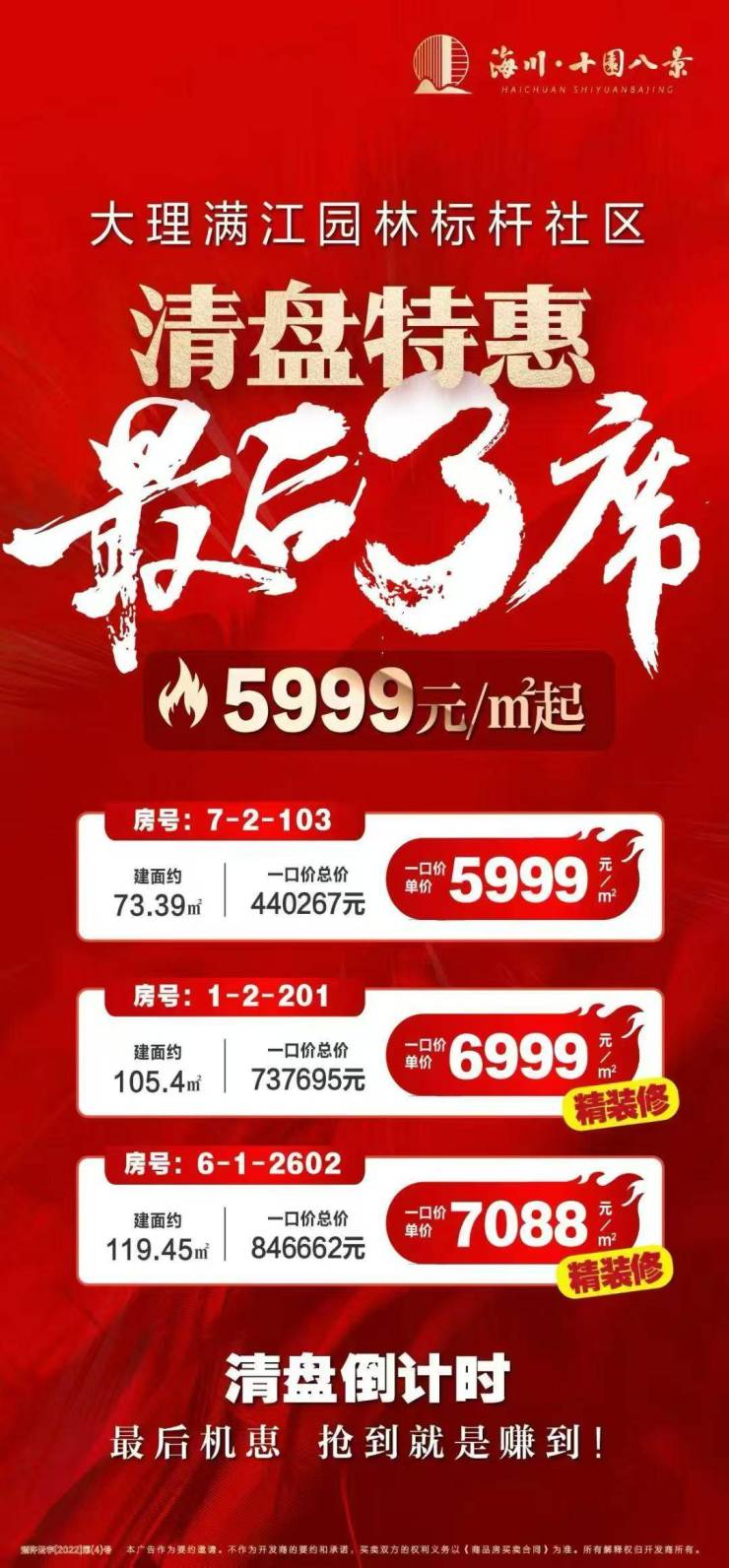 海川·十园八景,大理满江园林标杆社区,清盘特惠房源推荐,一口价单价约5999元/㎡起!关注海川·十园八景的朋友可前往售楼处现场看房,咨询房源信息请拨打电话400-156-0036
