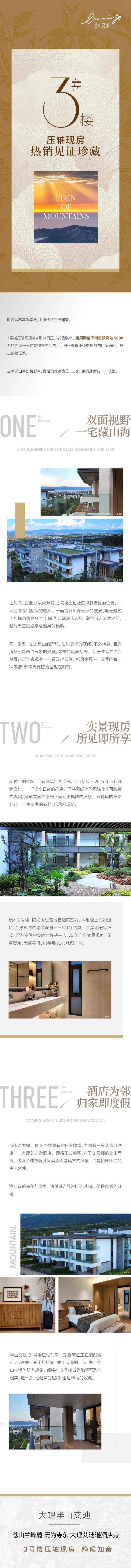大理半山艾迪,3号楼压轴现房自正式发售以来,当周即创下销售额突破5000万的佳绩一一这是懂得生活的人,对一处真正值得托付的山海居所,投出的信任票。