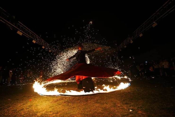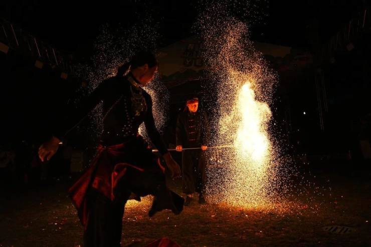 耀眼的火舞划破夜空,那是波光粼粼的星光,仿佛照亮了心底的希望,那是奔涌浩荡的焰火,燃尽邪祟让百家安宁,人们围站四周、拥抱彼此,当火光映进眼眸时,看见的是充满期待的开始。