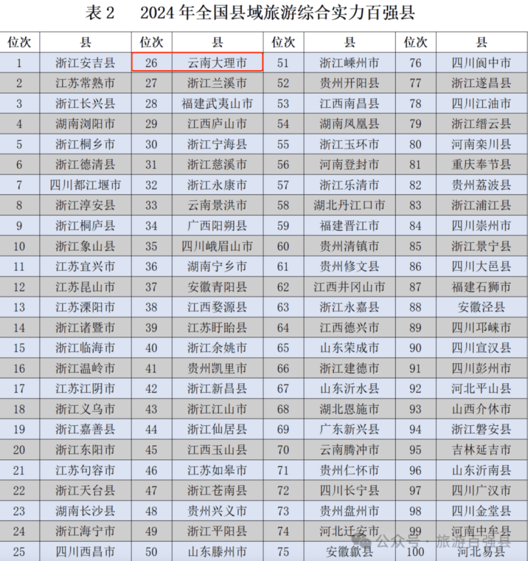 据了解,县域旅游综合实力研究从旅游经济发展水平、政府推动作用、旅游产业综合带动功能、旅游开发与环境保护、旅游设施与服务功能、旅游质量监督与市场监管6个方面32个指标构建研究体系,得分居前100位的即为2024年全国县域旅游综合实力百强县。