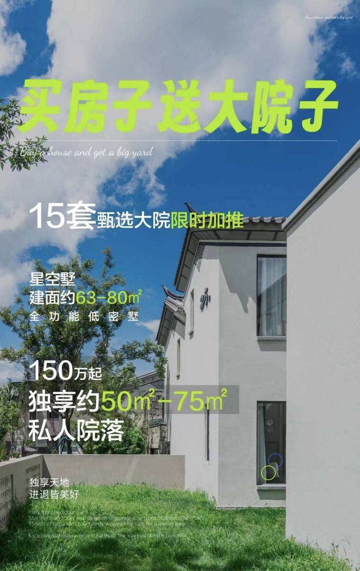 大理那山那海,15套甄选大院限时加推,建面约63-80㎡全功能低密墅,总价约150万起,独享约50㎡-75㎡私人院落!关注大理那山那海的朋友可前往售楼处现场看房,咨询房源信息请拨打电话4001560036
