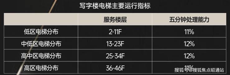 多部高低分区电梯,梯速最高可达6.0m/s,整体通行等候时长不超过50s,各区域通勤处理能力达到11%-15%,极大提升楼宇运转效率。结合不同层级不同分区合理规划的差异化梯户比,安全性和人员流动性可控,进行科学人员分流,保障各楼层、分区通行无阻。