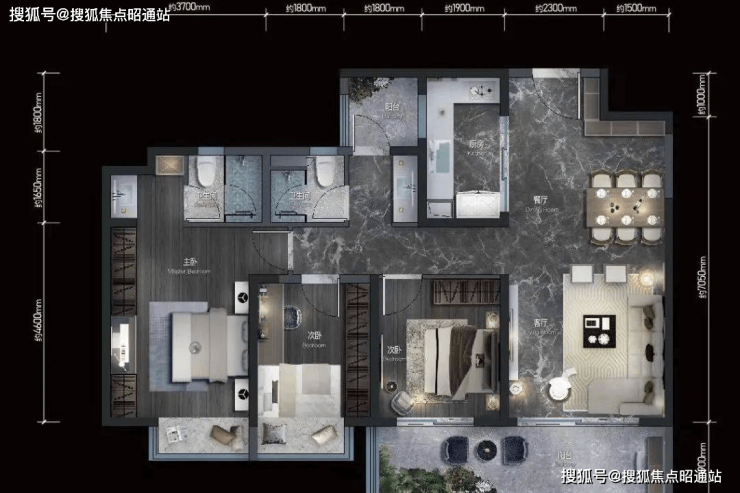 阔绰竖厅设计,动静分离,舒适主卧套房,开阔观景阳台,百变三居设计