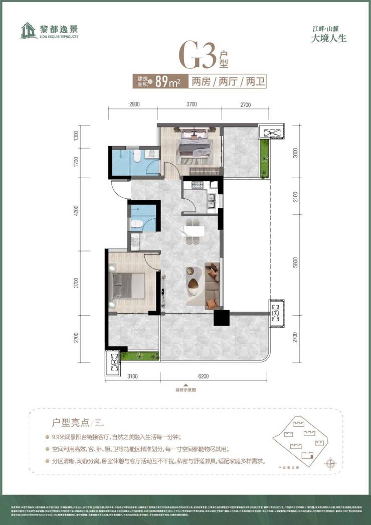 G3户型建筑面积约89㎡
