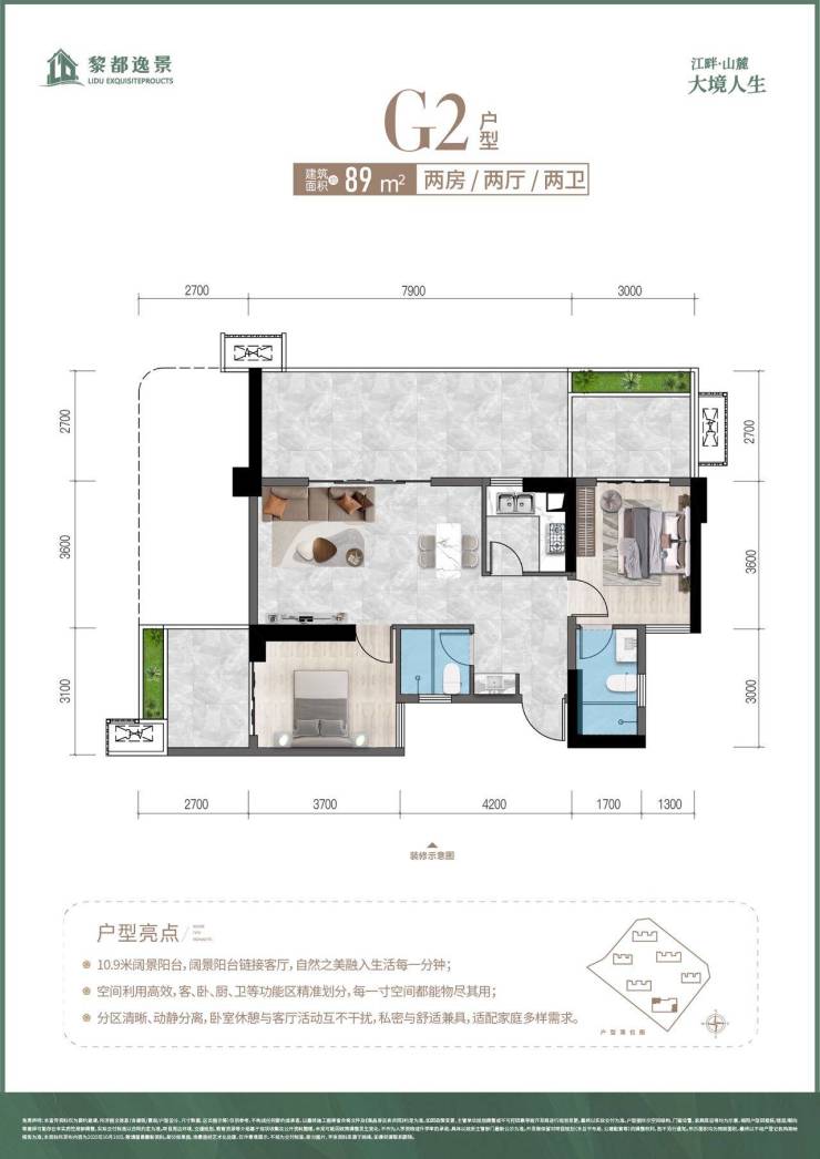 G2户型建筑面积约89㎡