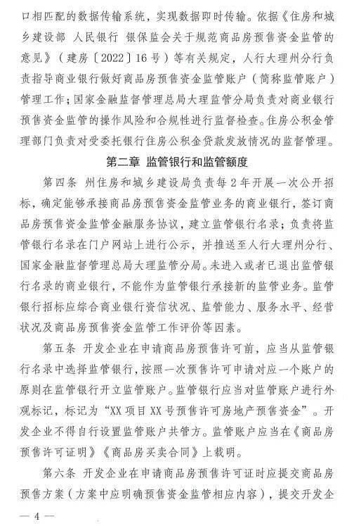 《大理州商品房预售监管资金监管实施细则(试行)》印发 12月1日起施行