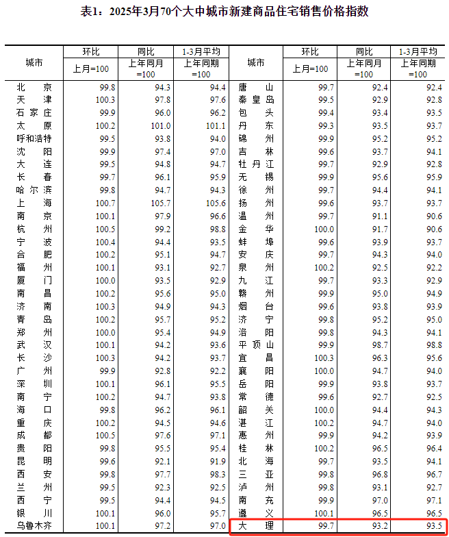 近日,国家统计局发布2025年3月份70个大中城市商品住宅销售价格变动情况!