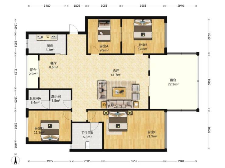 北区洱海庄园洋房,产证面积146.43平,东西朝向。总高5层,1梯2户。4房双卫带约22平露台,精装修拎包入住,户型方正楼层好,房东急售。看房非常方便,有钥匙。