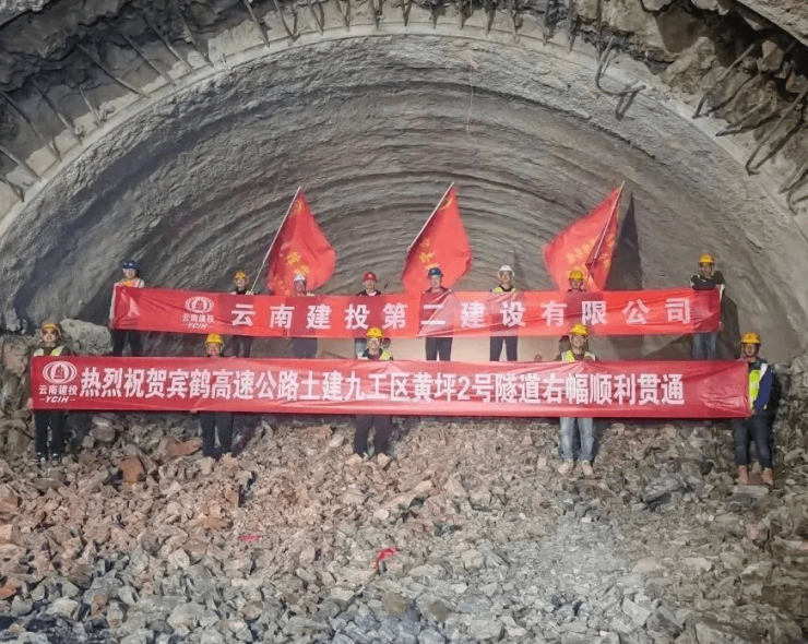近日,宾鹤高速公路项目黄坪2号隧道右幅顺利贯通,至此,该隧道实现双幅贯通。黄坪2号隧道位于鹤庆县黄坪镇北东侧,为分离式隧道,左幅全长1425米,已于10月4日贯通;右幅全长1455米。