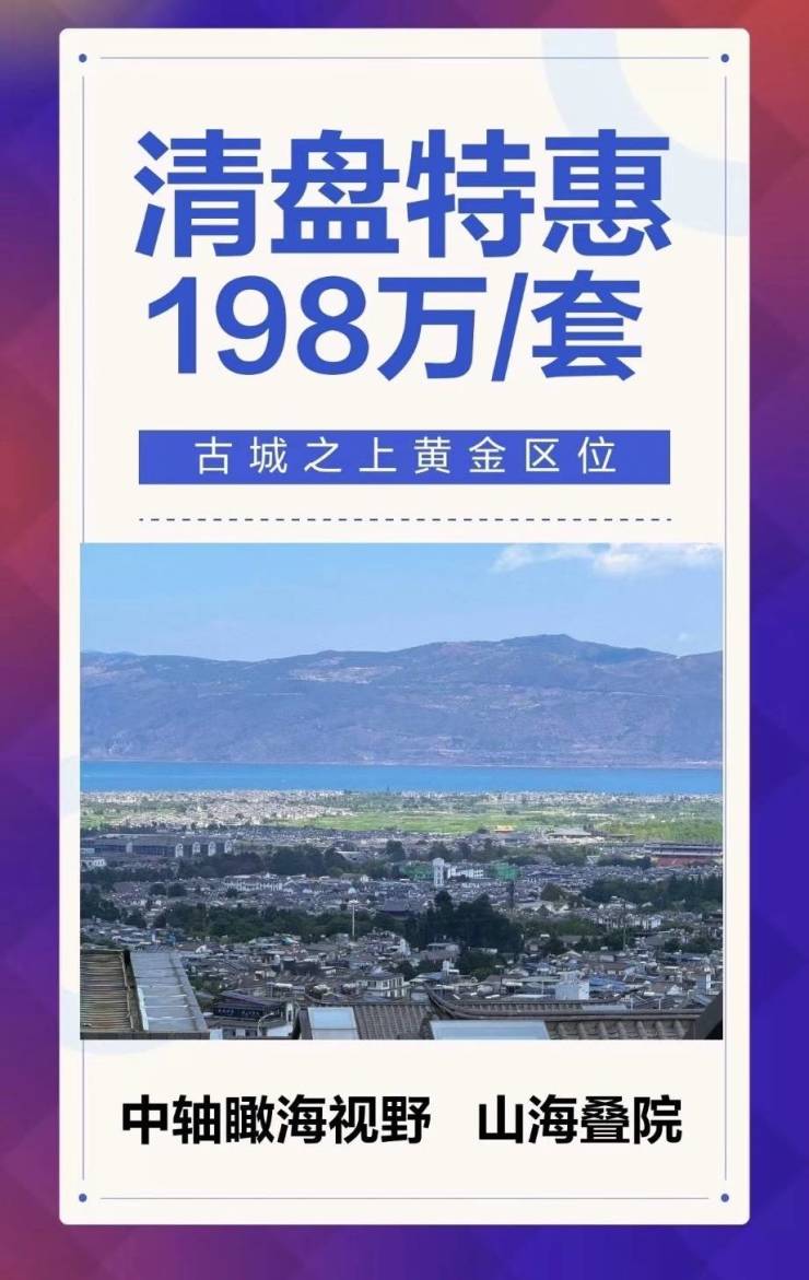 华侨城·大理王宫,中轴瞰海视野,古城之上黄金区位,山海叠院清盘特惠,总价约198万/套起!关注华侨城·大理王宫的朋友可前往售楼处现场看房,咨询房源信息请拨打电话4001560036 转 418223!