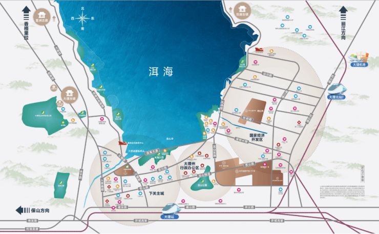 占位路铁空交通枢纽,坐享高铁洱海站(规划中),与大理站直线距离约2.5km,帷幄城市交通门户,城市主干道龙山路在侧,通达全城,与大理机场直线距离约9KM,尽享空港便捷出行优势。