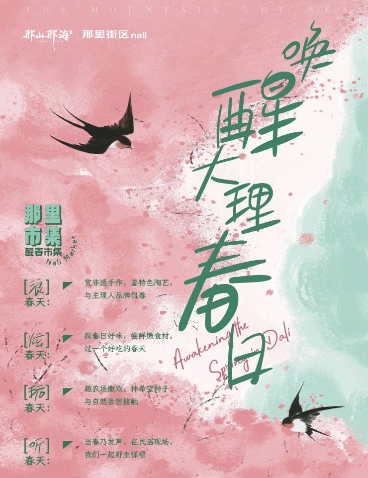 从第一次那里市集举办至今,那山那海在不同的季节、节日或项目关键时间点举办过许多次主题各异的市集,并深受朋友们的喜爱。那山那海相信,大理的春天也是一场盛大的市集,万物复苏、生机盎然,市集是需要“赶”的,要赶着那苍山去,赶着春暖花开的日子去,去追赶崭新一年里,蓬勃向上的生命力。
