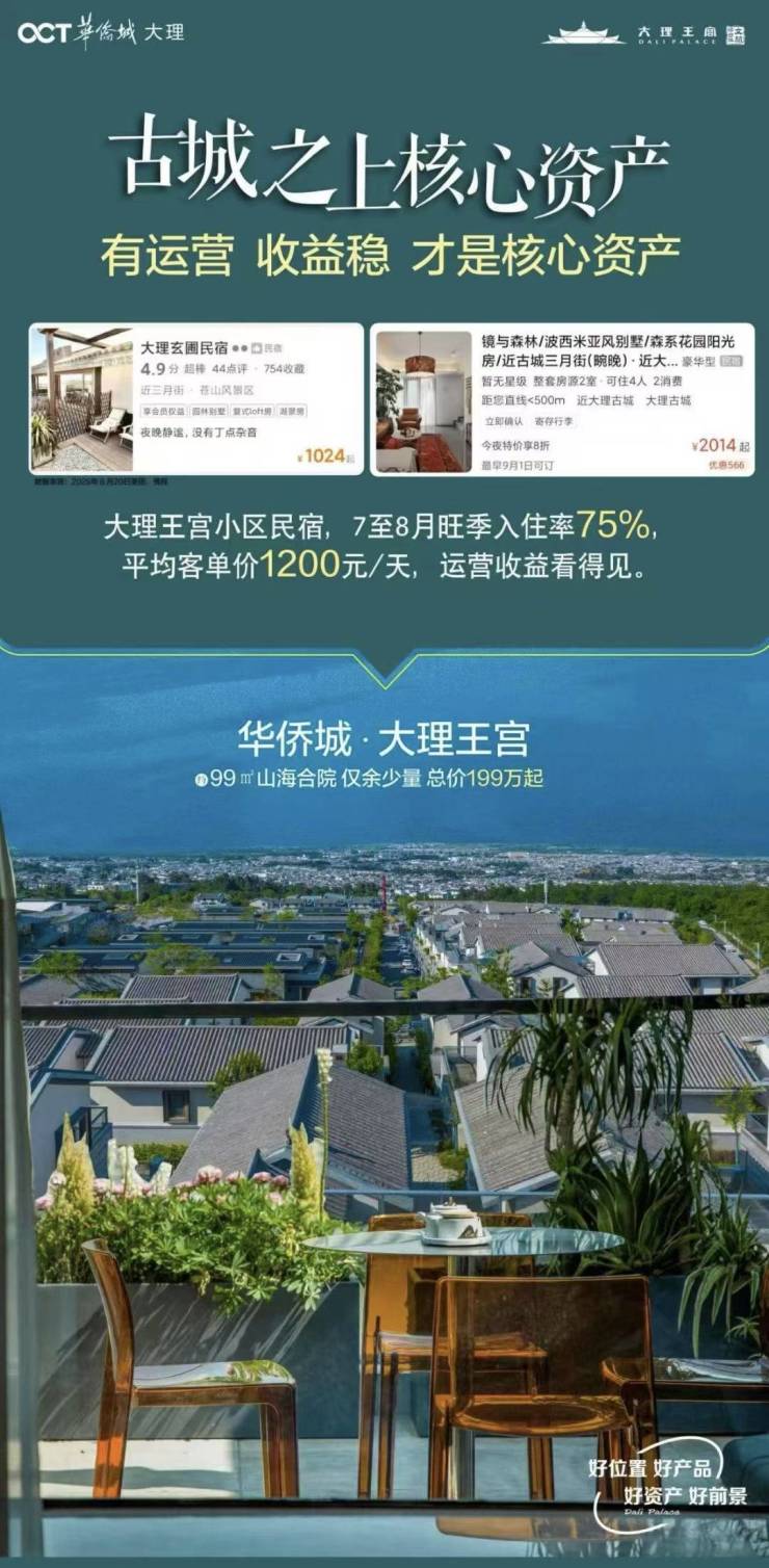 华侨城·大理王宫,建面约99㎡山海合院,仅余少量,总价约199万起!关注华侨城·大理王宫的朋友可前往售楼处现场看房,咨询房源信息请拨打电话4001560036 转 418223!