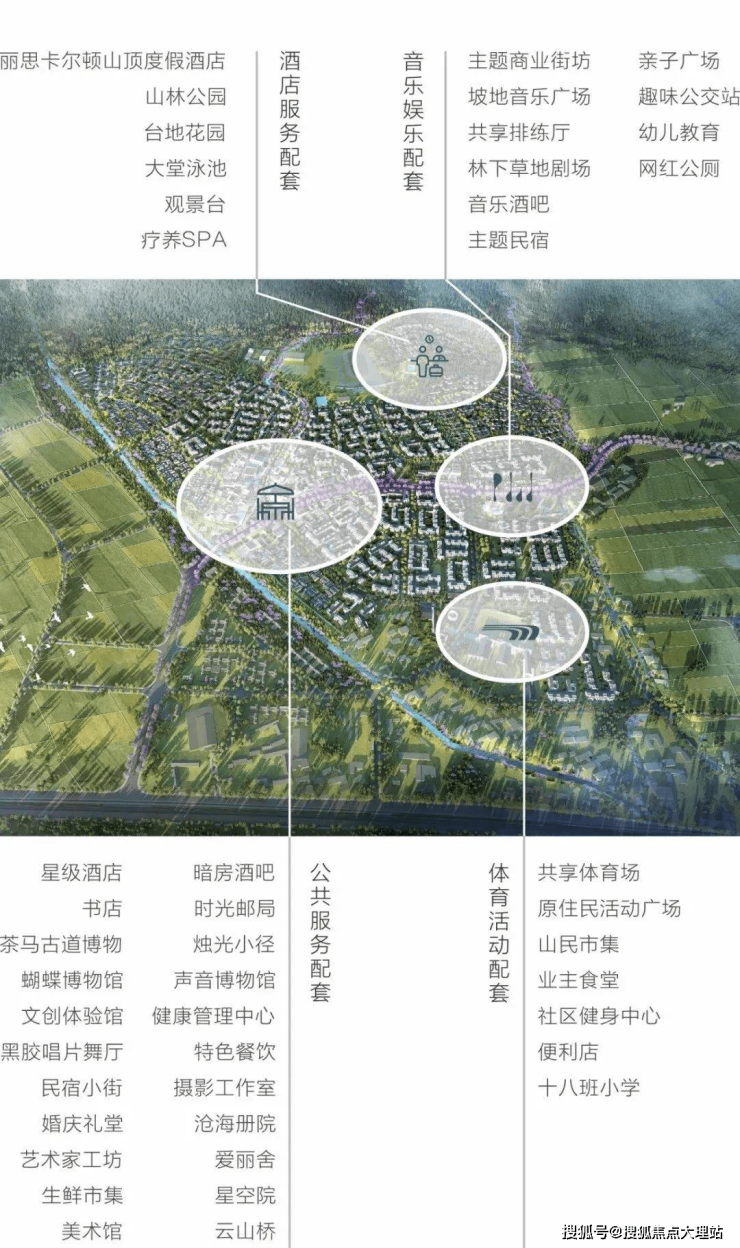 项目先期供地1300亩用地,总投资约为40亿,规划建设丽思卡尔顿酒店、威斯汀酒店、健康管理中心、白族文创艺术街区、艺术展示中心、演艺中心、滇西美食中心、星级影院、白族民宿商业街、苍山集市、艺文中心、轻食餐厅、暗房酒吧、艺术工坊、亲子乐园、星空墅、爱丽舍、梦工厂等,建设期为2020年至2025年。