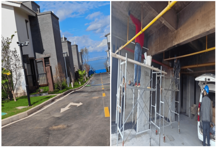 大理满江理想生活小镇-花坞许诺小镇2-2地块和风组团项目,现阶段已完成毛坯阶段基础工作,在推进竣工验收等工作中。后续我司将按合同约定开展精装施工和交付工作。
