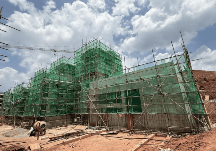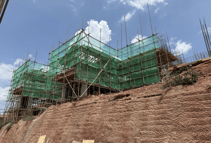 11栋室外挡墙完成100% 栏杆圈梁浇筑完成100%,正在进行小区路基施工;