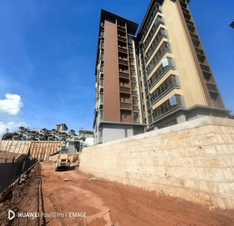 1#地库结构完成,1#地下室顶板挡墙施工完成。