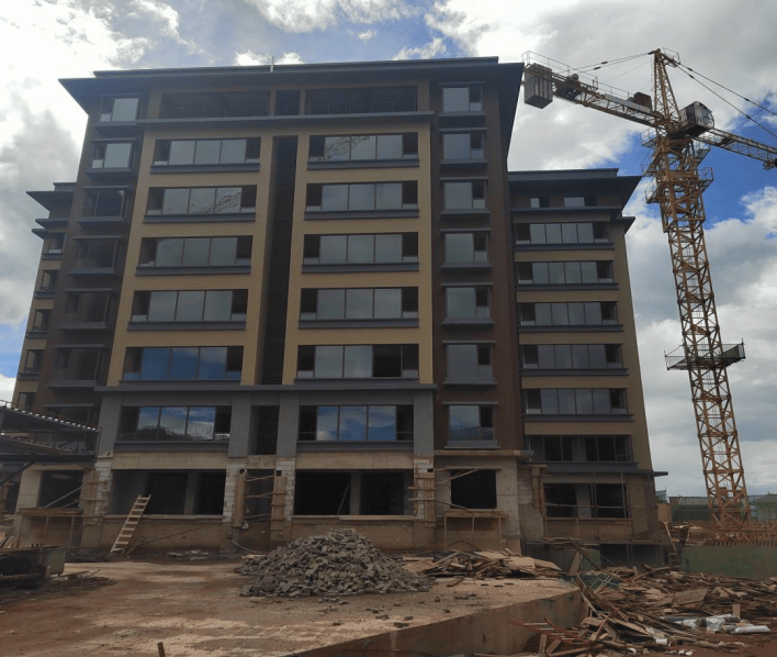 8#楼主体已全部完成、一至五层二次结构已完成、六层二次结构模板制安施工中、一至二层内外墙抹灰已完成、水电开槽及预埋至四层;