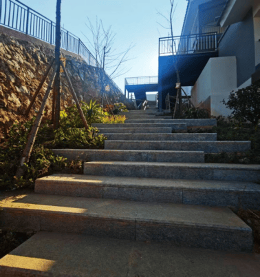 2#楼主体结构完成,室外楼梯及挡土墙施工完成100%;