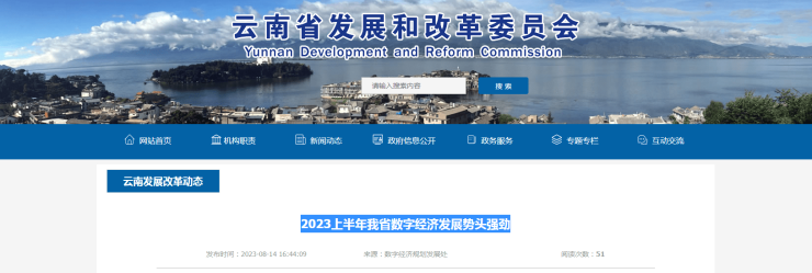 2023年以来,云南省发展和改革委员会认真落实省委、省政府关于推进数字云南建设的部署要求,深入实施数字经济发展三年行动,印发《2023年数字云南工作要点》,加快数字产业化、产业数字化,着力打造数字云南强引擎。