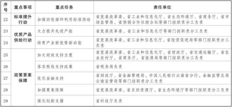 18.有序推进再制造和梯次利用。大力引进培育装备再制造企业,鼓励对具备条件的废旧生产设备进行再制造。深入推进汽车零部件、工程机械、机床等传统设备再制造,探索风电光伏、动力电池等产品设备及关键部件梯次利用。支持中国(云南)自由贸易试验区昆明、红河、德宏片区争取国家重点行业再制造产品进口试点。