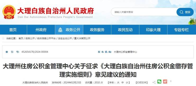 近日,大理州住房公积金管理中心发布了关于征求《大理白族自治州住房公积金缴存管理实施细则》意见建议的通知。