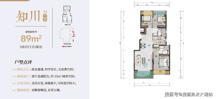 A1 89㎡ 3房2厅2卫1阳台 一梯两户 14000-16000元/㎡ (24栋未开)/25/31/30栋 10/11层