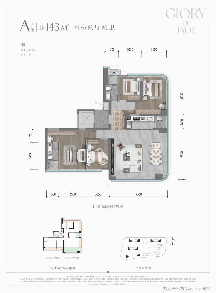 5栋:168㎡(四房两厅三卫),6栋:143㎡(四室两厅两卫),