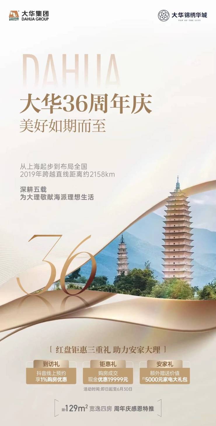 大理大华·锦绣华城,建面约129㎡宽逸四房,周年庆感恩特推,红盘钜惠三重礼,助力安家大理。关注大理大华·锦绣华城的朋友可前往售楼处现场看房,咨询房源信息请拨打电话400-156-0036