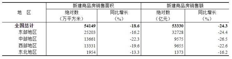 新建商品房销售额:指报告期内出售新建商品房屋的合同总价款(即双方签署的正式买卖合同中所确认的合同总价)。该指标与新建商品房销售面积同口径,也是累计数据。