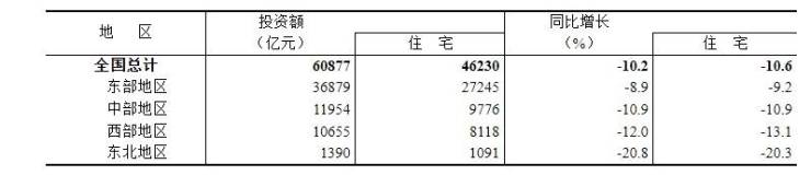 1—7月份,全国房地产开发投资60877亿元,同比下降10.2%(按可比口径计算,详见附注6);其中,住宅投资46230亿元,下降10.6%。