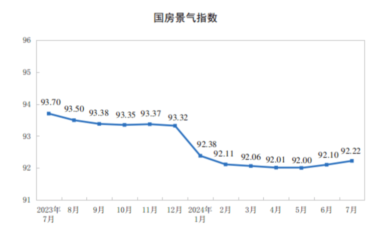 7月份,房地产开发景气指数(简称“国房景气指数”)为92.22。