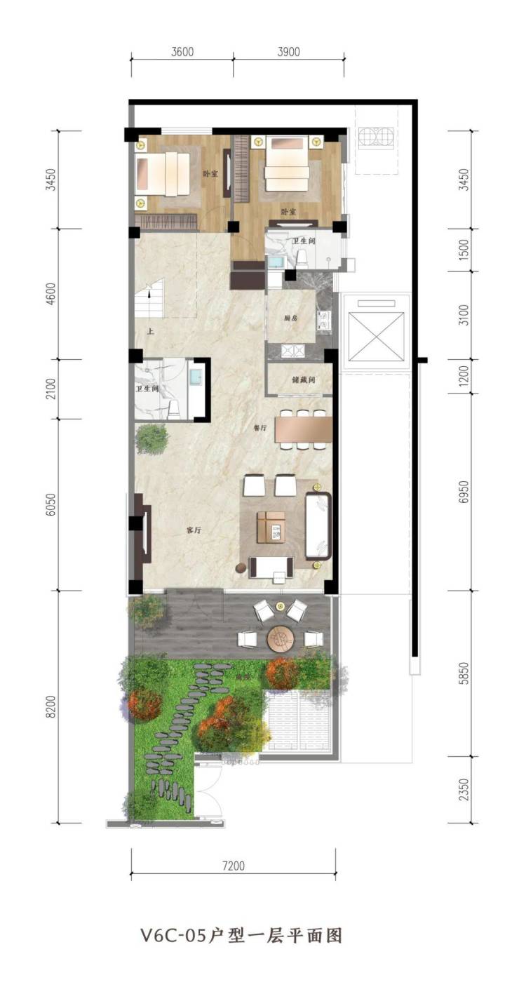 双层布局,动静分区 ,入户庭院,莳花弄草