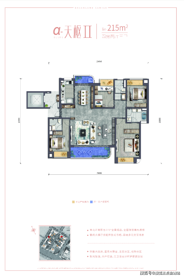 ①面积约170-215平米豪装大平层(4500元/平米装标),即买即入住