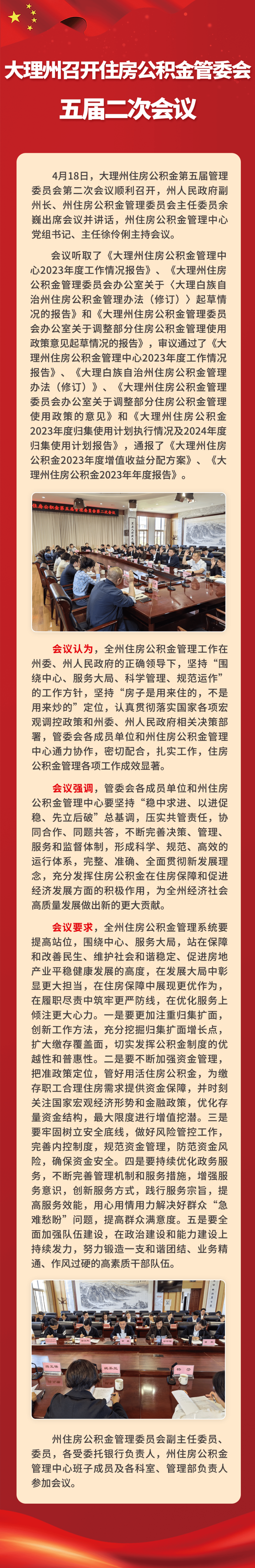 近日,大理州住房公积金第五届管理委员会第二次会议顺利召开,州人民政府副州长、州住房公积金管理委员会主任委员余巍出席会议并讲话...