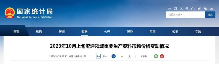 据对全国流通领域9大类50种重要生产资料市场价格的监测显示,2023年10月上旬与9月下旬相比,18种产品价格上涨,30种下降,2种持平。