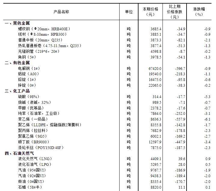 2023年10月上旬流通领域重要生产资料市场价格变动情况