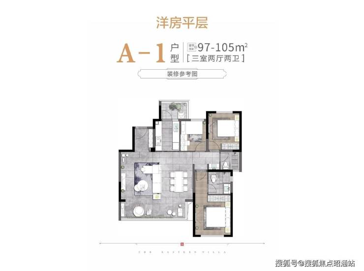[A-1]建筑面积约100㎡横厅,实得面积约117㎡,优惠后总价约160-170万;