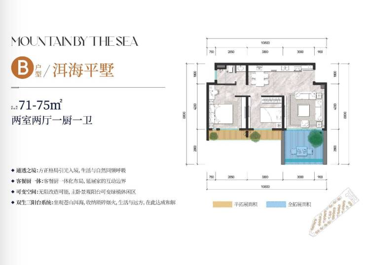 第二类“洱海平墅”B、E、G户型;建筑面积71-75㎡,赠送面积约15㎡,总价76-100万,一次性付款折后价约70-90万。