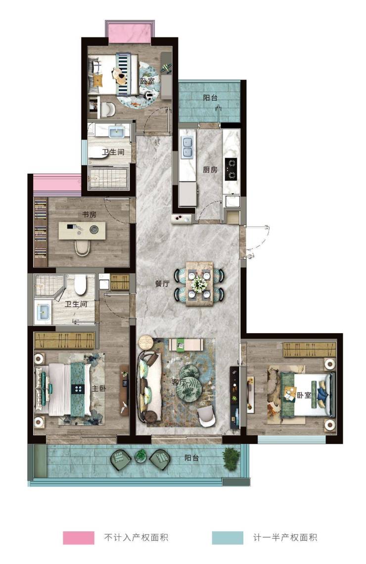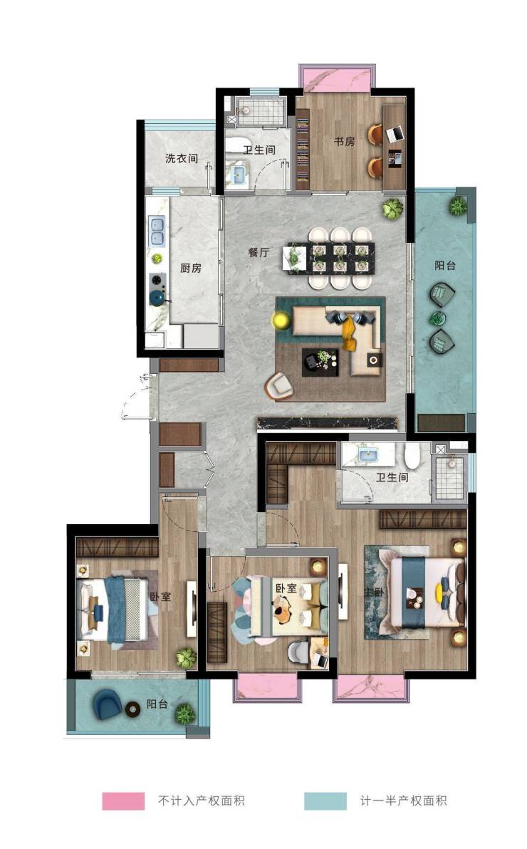 ⭐B户型:建面约140㎡,四室两厅两卫