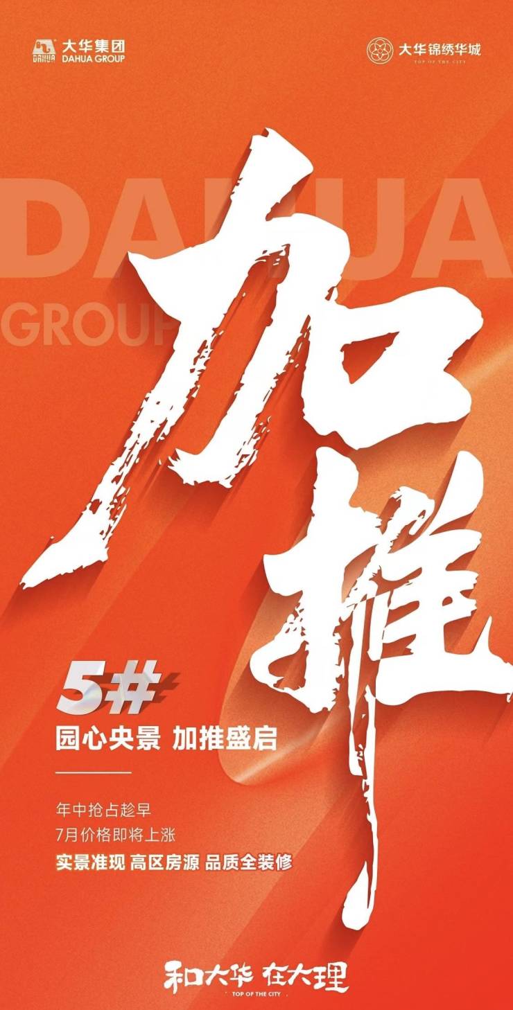大理大华·锦绣华城,5#园心央景,加推盛启,年中抢占趁早,7月价格即将上涨!实景准现,高区房源,品质全装修!关注大理大华·锦绣华城的朋友可前往售楼处现场看房,咨询房源信息请拨打电话400-156-0036