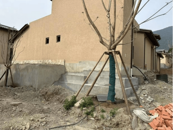5.室外景观:乔木种植完成90%,室外路面硬化完成90%,路面踏步砌体完成;